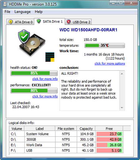 HDDlife Pro v3.1.157 英文正式版(專業的硬碟監控工具)