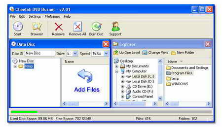 、WAV、AVI、OGG檔直接刻錄音頻CD。 Cheetah DVD Burner同時還包含一個CD抓軌工具