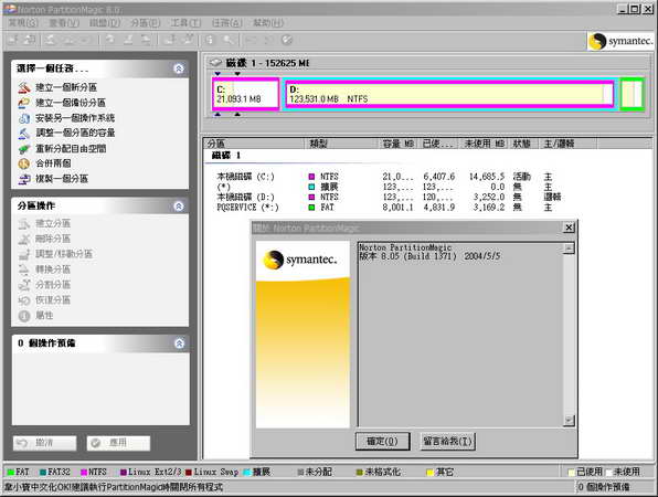 Partition Magic 8.05 繁體中文免安裝版 建立、調整、合併以及移動分割磁區工具