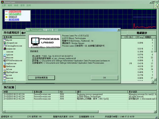 Process Lasso Pro 3.805 (64Bit32bit) 繁中多國語言官方安裝版(獨特的調試級別的系統優化工具)
