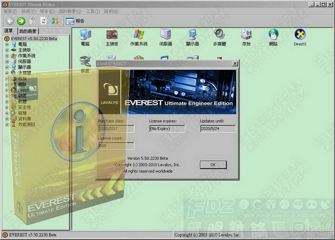 EVEREST Ultimate Edition v5.50.2230 綠色繁體中文版 檢測並完全顯示PC系統所有資訊的五星級軟體