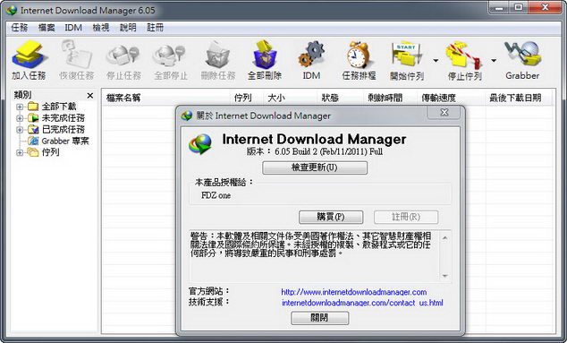 破解說明:先將Crack放罝安裝目錄執行破解,然後在開啟IDM於註冊處,輸入:FUXGQ-SNOPA-3M5Q1-QILHZ,