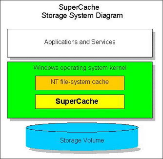 SuperCache通過使用電腦中的RAM當作“容器”來存儲經常使用的磁片資料 ,打破