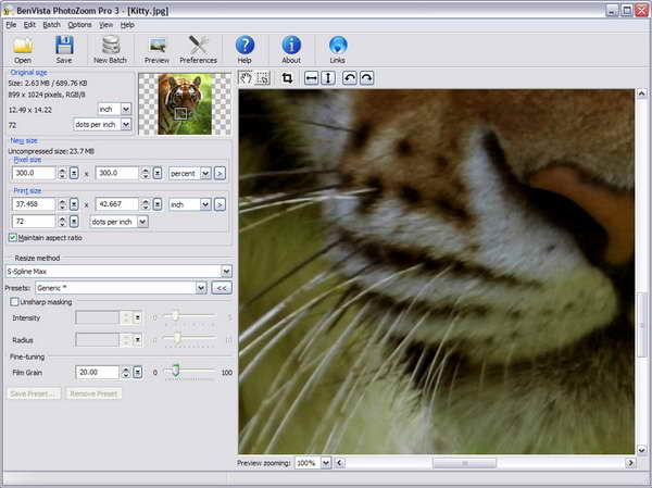 對數碼圖片進行放大時,總會降低圖片的品質,而這款軟體使用了S-SPLINE