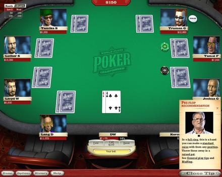 可以在電腦前感受撲克世界大賽的氣氛。另外遊戲附有提示和教學,讓您可以輕鬆
