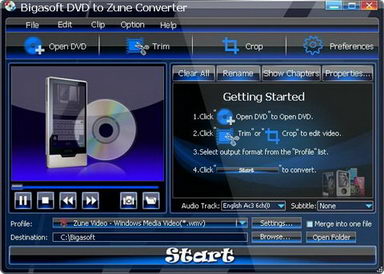 Bigasoft DVD to Zune Converr v1.7.15.4356 易於使用的DVD轉換軟體 英文破解版